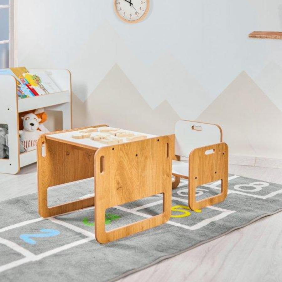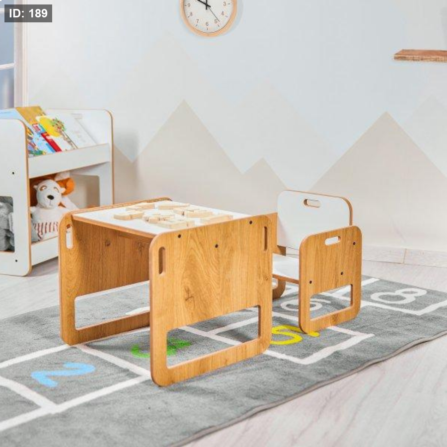 أبعاد المنتج: الطاولة (من الخارج إلى الخارج) 40x38x35 سم، الكرسي (من الخارج إلى الخارج) 32x25x35 سم.