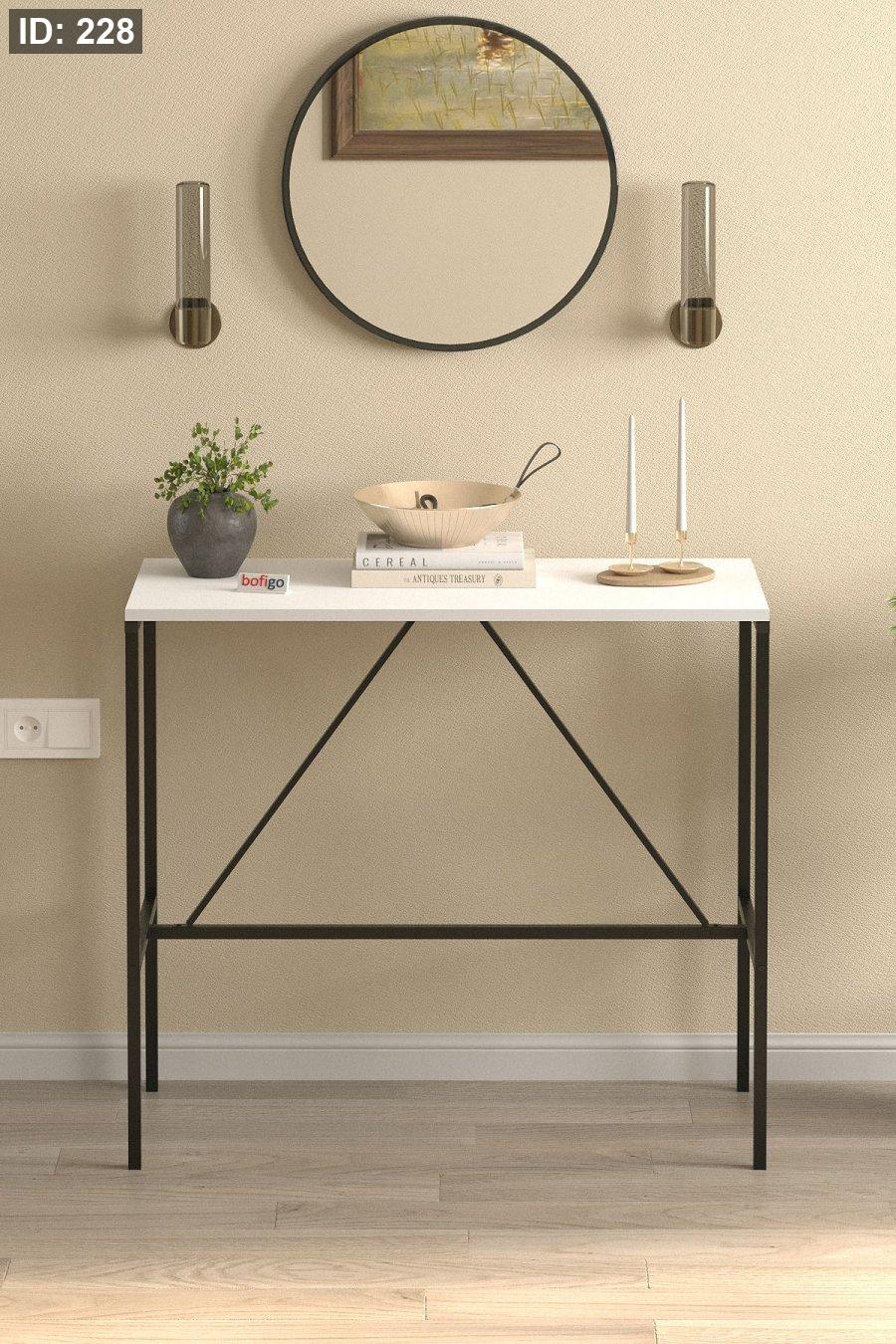 يتميز الهيكل المعدني لطاولة الكونسول ببنية قوية ومتينة، وجميع أسطحها مطلية بطلاء مسحوقي زخرفي.