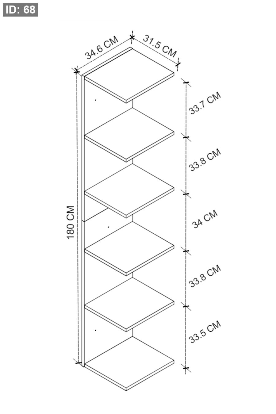 - العرض بين الرفوف: 33.8 سم